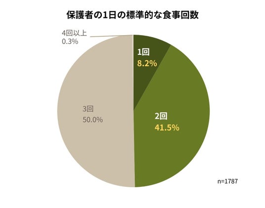 保護者自身の食事状況についても調査したところ、回答者のおよそ5割が、1日2食以下で生活していることがわかりました。