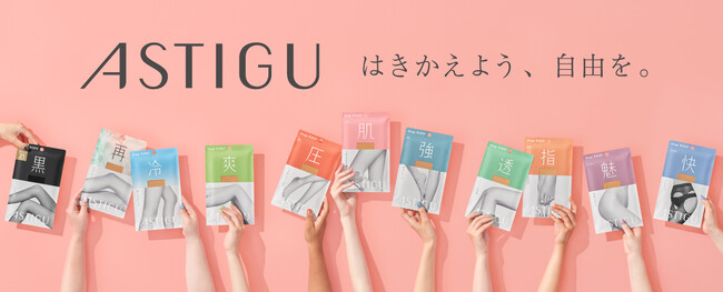 アスティーグは、プレーンストッキングを求める全ての方のニーズにお応えできるよう、11種類のラインアップを豊富なサイズとカラーバリエーションで展開。その日の気分やファッションに合わせた美しさや、欲しい機能性を備えたストッキングを選んでいただけるブランドです。