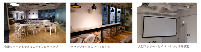 最大55名程度が着席可能です。全席フリーアドレスとすることで、島構造の固定席よりも話しかけやすい雰囲気になっています。なお、20名程度が着席可能な執務席 兼 大会議室を別フロアに準備中です。