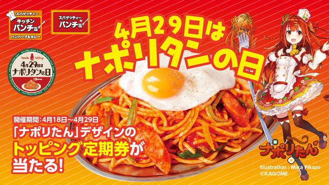 株式会社ファイブグループ(東京都武蔵野市:代表取締役社長 坂本憲史)の関連会社である株式会社B級グルメ研究所(東京都武蔵野市:代表取締役社長 坂本憲史)が運営する飲食店『スパゲッティーのパンチョ』は、この記念日を盛り上げるべく、4月18日(月)~29日(金・祝)の期間中、「ナポリタンの日」ハッシュタグキャンペーンを実施いたします。『パンチョ』各店の「ナポリタン」写真とコメントにハッシュタグ「#パンチョでナポリタンの日」を付けてInstagram、twitterへ投稿いただいた方の中から100名様に「トッピング定期券」をプレゼントいたします。