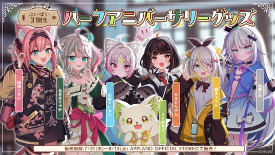 株式会社アップランド(本社:東京都世田谷区、以下「当社」)が運営するVTuberグループ「ぶいぱい」3期生メンバー7名の『ハーフアニバーサリーグッズ』をAPPLAND OFFICIAL SHOPにて販売することをお知らせします。