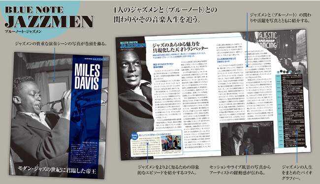 モダン・ジャズの世紀に君臨した帝王マイルス・デイヴィスをはじめ、ハービー・ハンコック、ソニー・ロリンズ、アート・ブレイキー、ジョン・コルトレーンなど、毎号1人のアーティストを取り上げて、その生き様や〈ブルーノート〉での活躍、〈ブルーノート〉の歴史を紐解いていきます。
