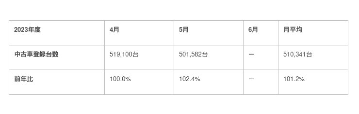 【中古車市場統計レポート(2023年5月)】より抜粋してご案内いたします。