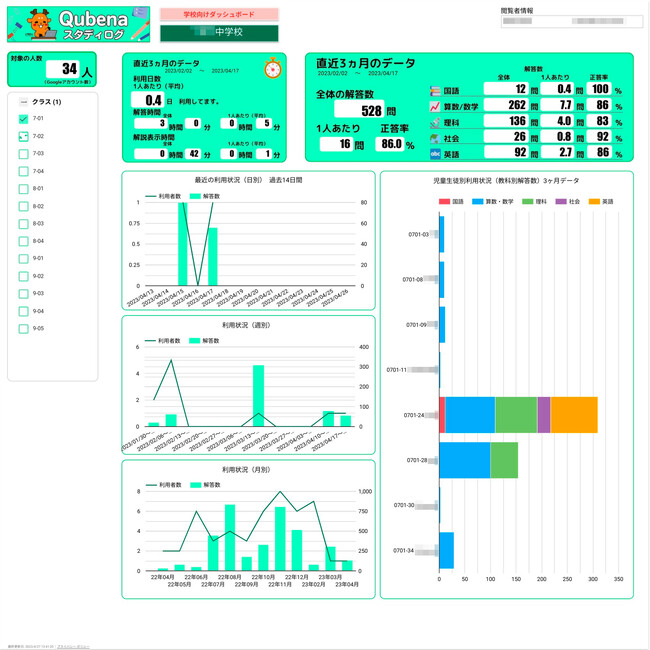 このたびそうした取り組みの一つとして、Qubenaの学習データと奈良市が独自に構築するデータ利活用基盤との連携を2023年2月より開始し、2023年6月より、奈良市独自のダッシュボードを活用した学習支援を実施することになりました。本取り組みは、奈良県域のGIGAスクール運営支援センターを受託しているGoogle for EducationのスペシャリストカンパニーであるDdrive株式会社との連携によって実現しております。