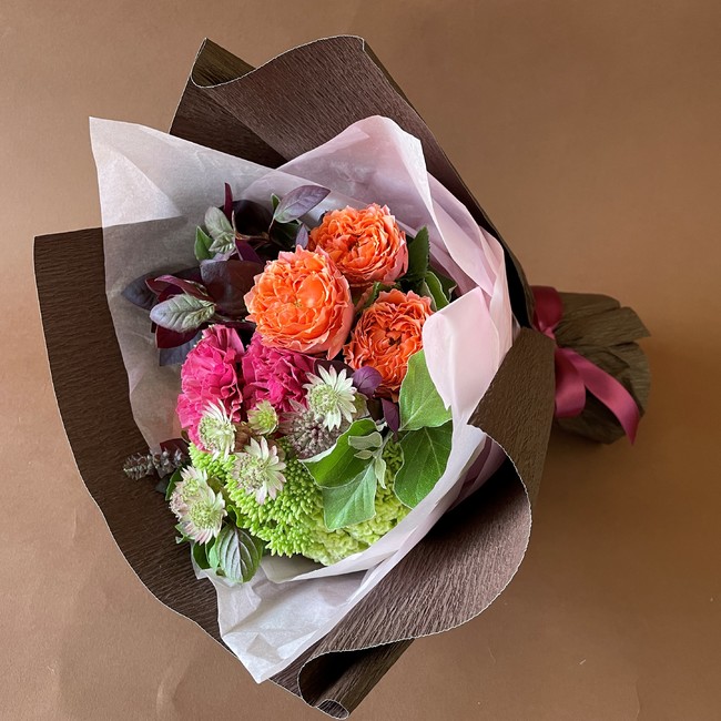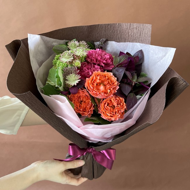秋色の華やかでスタイリッシュなブーケ。温かみのある秋色は様々なギフトにもおすすめです。