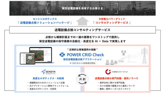 株式会社センシンロボティクス(本社:東京都品川区、代表取締役社長 CEO:北村 卓也、以下「センシンロボティクス」)と中部電力パワーグリッド株式会社(本社:愛知県名古屋市、代表取締役 社長執行役員:清水 隆一、以下「中部電力パワーグリッド」)は、共同で、「送電設備点検コンサルティングサービス」の提供を開始しましたので、お知らせします。