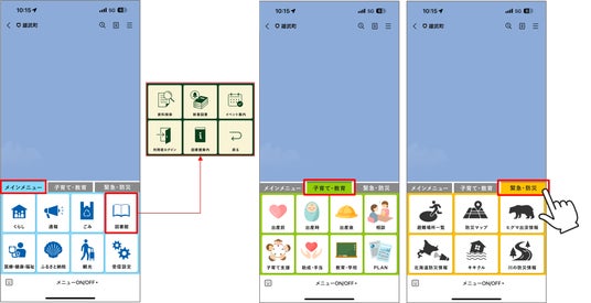 画面下部に固定されている「メインメニュー」「子育て・教育」「緊急・防災」の3つのリッチメニューから、各種情報が掲載されているWebサイトに遷移することができます。従来はホームページを検索し、該当ページにアクセスすることで得ることができた情報ですが、今後はLINEのトーク画面から手軽に情報源にたどり着くことができます。