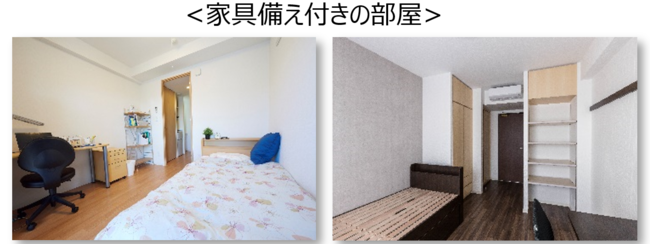 ドーミーではベッド、机、椅子、クローゼット、カーテン、Wi-Fiなどの設備が備え付けられており、入居後の生活を早期に安定させられます。さらに、便利なマンスリーセットにはテレビや電気ポットなどもありお得。テレワークにも対応した快適な生活をすぐ送る事が出来ます。