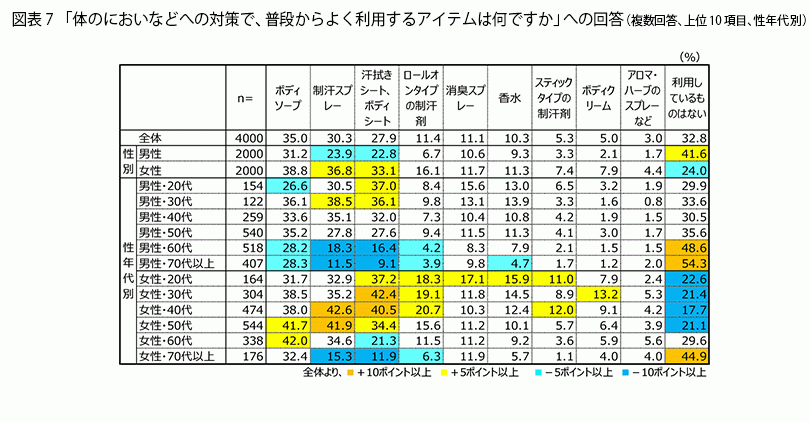 体のにおい対策“3大アイテム”の使用状況にも男女差