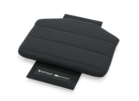 中材には、エアウィーヴ独自素材のエアファイバー(R)を使用。復元性の高い適度な反発力で体圧を分散し、長時間の座り疲れを軽減します。カバーには滑り止め加工を施し、クッションを座面にバンドで巻き付けて固定しているため、動いてもずれにくい仕様となっています。色は客席に合わせ全席ブラックを採用。