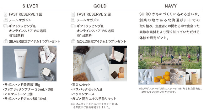 会員ステージごとにSHIRO ならではの特別な特典をお受け取りいただけます。