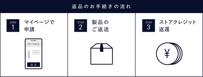 当社にてご返送いただいた製品の到着を確認後、SHIROオンラインストアでご使用いただける返品金額の「ストアクレジット」をお客様のSHIRO Membership Program 会員情報に返還させていただきます。*3
