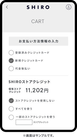 SHIROオンラインストアにて、ご希望の製品をお選びの上、「ご注文情報の入力画面」内「お支払い方法情報の入力」欄にてご使用になられるストアクレジットの金額をご入力ください。