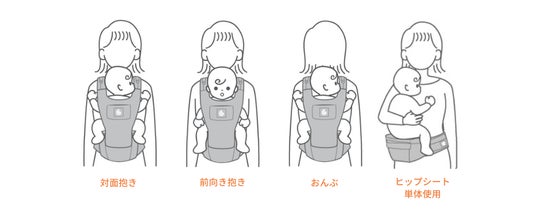 抱き方 :対面抱き、前向き抱き、おんぶ、ヒップシート単体使用