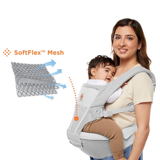 通気性と肌ざわりに優れたSoftFlex(TM)メッシュを使用。抱っこで気になるムレを軽減し、お子さまをやさしく包み込みます。