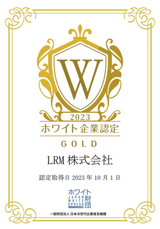 LRM株式会社様が、一般財団法人日本次世代企業普及機構(通称:ホワイト財団)が運営する「ホワイト企業認定 ゴールドランク」を取得しましたことをお知らせいたします。