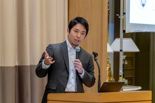 キャディCEOで、現在米国を拠点とする加藤は、本会議に合わせて帰国。参加者に向け冒頭より、危機感を煽るように、日本のGDPは、1860年の約2%から戦後1950年には約3%、1990年代には18%に達し、短期間で驚異的な成長を遂げたが、2024年現在では4%に低下し、ドイツに抜かれて世界4位に転落。将来的には2%にまで下がる可能性があるとの懸念を示しました。課題解決の鍵として、「一人当たりの付加価値向上」を挙げ、生産性向上のための「資産化」を提案。日本企業はデータ活用や効率化に遅れをとっており、経験をデータ化し、それを価値に変換しグローバルで共有する重要性を強調しました。