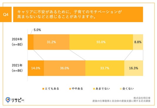 ■36.2%が、キャリアへの不安から「子育てのモチベーションが高まらない」と実感、2021年より13.8ポイント減少