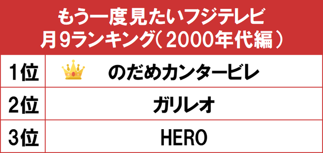 もう一度見たいフジテレビ月9ランキング(2000年代編)