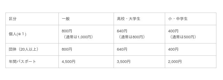 ※年間パスポート・共通券購入への適用、他の割引との併用はできません。