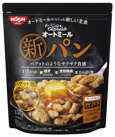 そこで今回、食感と形を本物のごはんに近づけた「おいしいオートミール 新ごはん」、さらにパン(バゲット) に近づけた「おいしいオートミール 新パン」、フレーク型に加工した「おいしいオートミール 新フレーク」を新発売します。