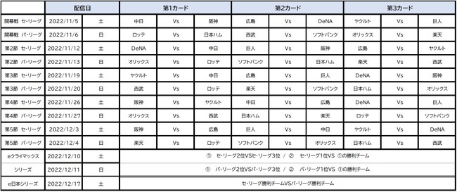 「eBASEBALLプロスピAリーグ」2022シーズン スケジュール