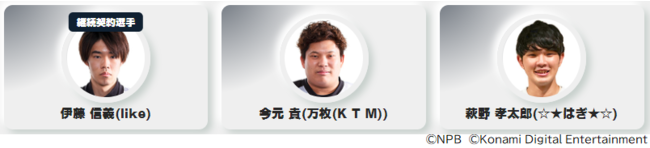 ※ユーザーネームを併記していますが、「eBASEBALLプロスピAリーグ」では、プレイヤーは基本的に本名で活動します