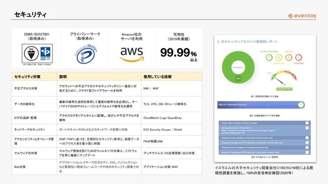 eventosを運営するbravesoft株式会社は、2018年3月にISO27001(情報セキュリティマネジメントシステム:ISMS)、2020年8月よりプライバシーマーク(Pマーク)を取得しております。