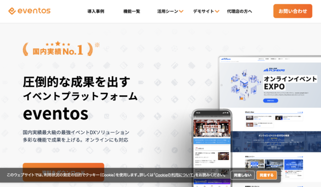 eventos(https://eventos.tokyo/)はオンラインイベント・リアルイベント双方に対応可能なイベントの公式WEB・アプリを短期間で作成、公開可能なプラットフォームです。