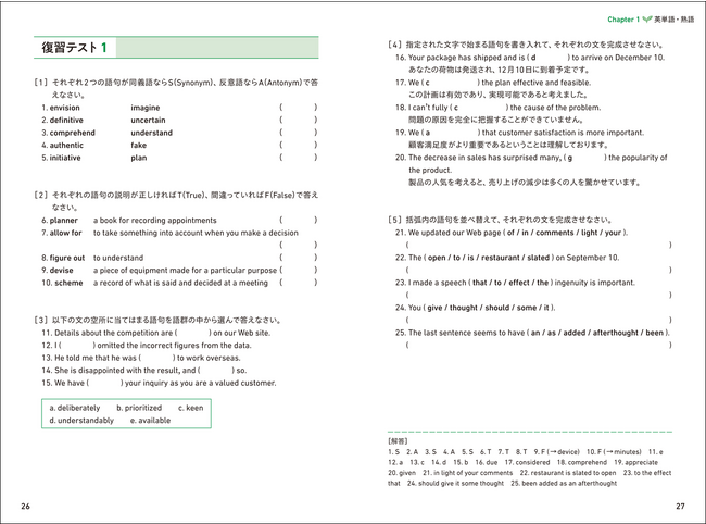 各セクションの終わりには復習テストがあり、単熟語の知識の定着度をチェックすることができます。