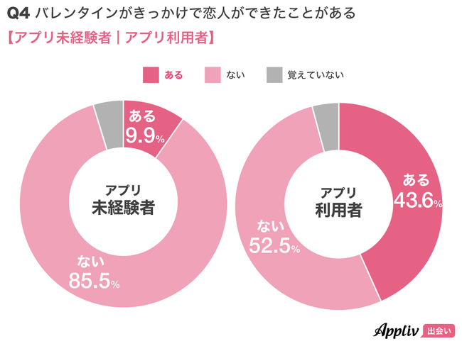 バレンタインをきっかけに恋人ができた人は、マッチングアプリ利用者が未経験者の5倍