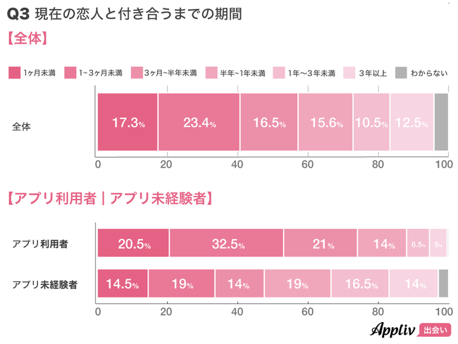 マッチングアプリ利用者の5割が、付き合うまでの期間が3ヶ月未満