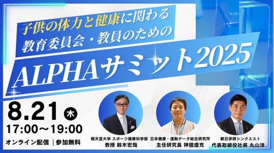 順天堂大・鈴木宏哉教授によるフィジカルリテラシーの解説から、体力テストのビッグデータを有するALPHAだからできる令和7度体力テスト結果の速報発表、体力テストの全国コンクールの紹介などコンテンツ多数!