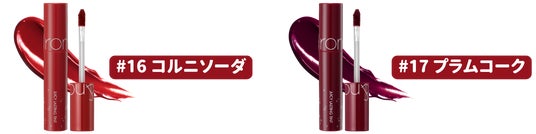 今回付録として登場するカラーはビビットすぎず、くすみ感を抑えた絶妙なカラーの#16 コルニソーダ or ダークで魅力的な#17 プラムコークの2色です。