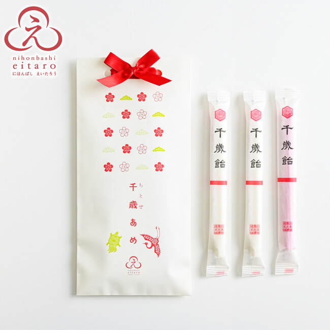 そんな「にほんばしえいたろう」がお届けする千歳飴はキュートなデザインの手提げ袋でお子様のお祝いを彩ります。