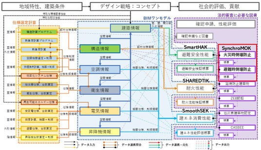 BIMと各種性能評価のデータ連携概要図(赤枠内がSynchroMOKの機能)
