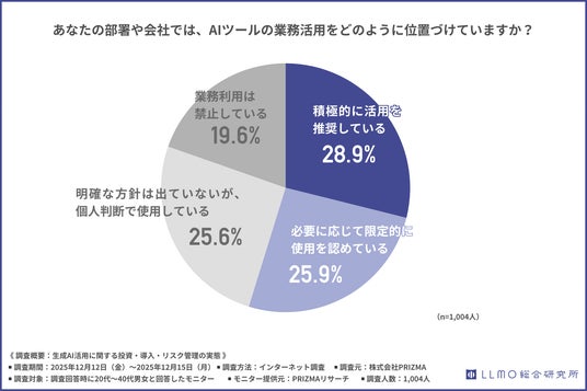 PRと調査を融合した新しい形のマーケティング支援を行う株式会社PRIZMA(本社:東京都渋谷区、代表取締役:杉本 昂輝)が運営する「LLMO総合研究所」にて12月に行った、「生成AI活用に関する投資・導入・リスク管理の実態」に関する調査の最新レポートを公開しました。