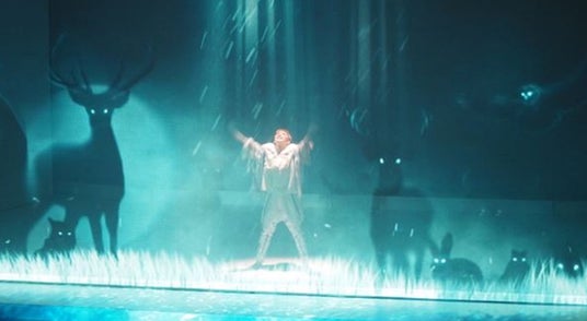 阿寒ユーカラ「ロストカムイ」は、デジタルアート、サウンドデザイン、ダンスなど各分野で注目を集めるクリエイターが阿寒湖に集結し、古式舞踊、現代舞踊、3DCG、7.1chサラウンドを組み合わせ、5台のプロジェクターで舞台を立体化し、誕生した演目です。
