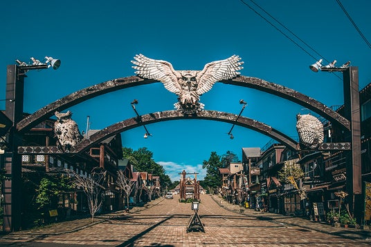 荘厳な木彫りのアーチをくぐった先に、創り手の街、阿寒湖アイヌコタンは広がっています。