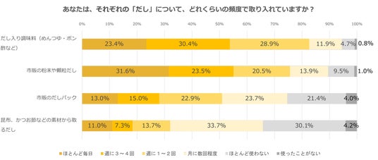 だしを週1回以上使用している人は98.5%、「だし入り調味料」の使用が最も多い