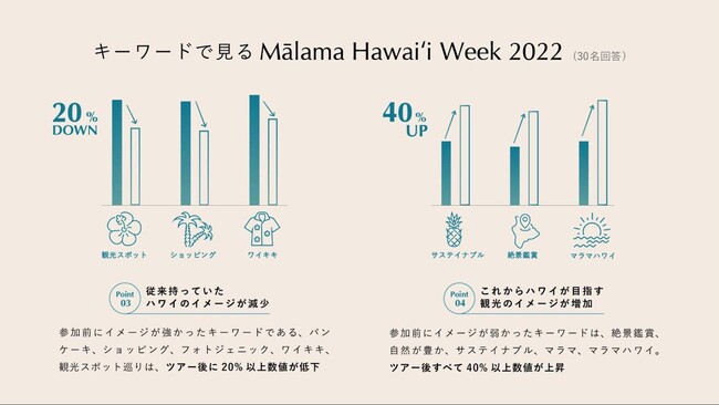 また、キーワード別に見ても、参加前後でハワイを想起するイメージが変わったことが分かりました。