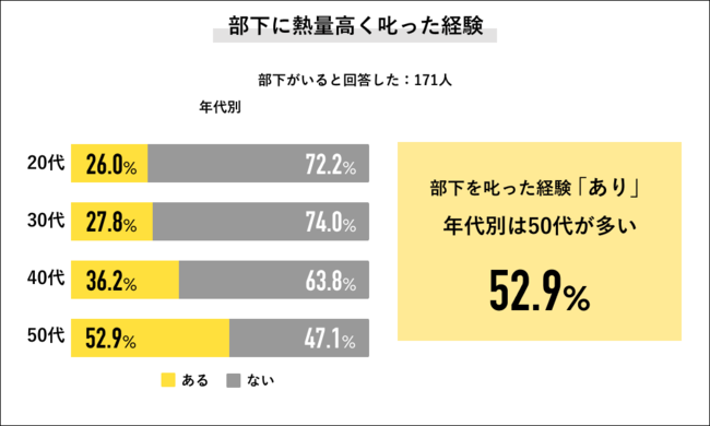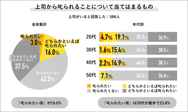 しかし2割超と少ない回答ではありますが、叱られることでモチベーションが上がると回答した年代別集計では、20代が最多回答だということもまた事実です。