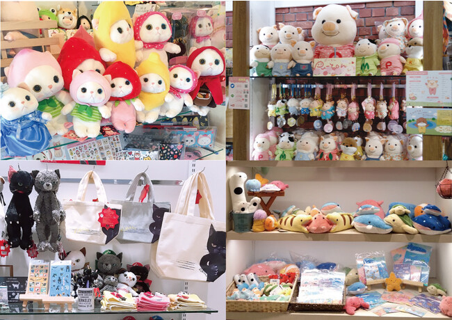 「choo choo」や「スクラッチ」など人気の猫グッズを始め、人気上昇中のぶたの「ぷーとん」、ぬいぐるみ専用コスチューム「プラッシュコスチューマー」など、ぬいぐるみからステーショナリー、バッグ他、可愛らしい商品を多数販売いたします。