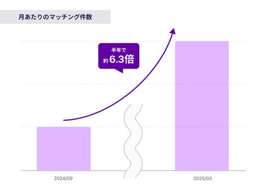 月あたりのマッチング数は半年で約6.3倍に(新卒・インターンを含む)