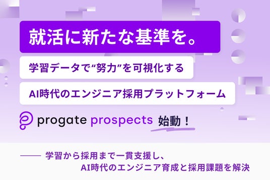 プログラミング学習サービス「Progate(プロゲート)」を運営する株式会社Progate(本社:東京都渋谷区、代表取締役:加藤 將倫)は、2024年4月にリリースしたエンジニア志望学生と企業が技術でつながる採用プラットフォーム「Progate Prospects(プロゲート プロスペクツ) β版」にご要望が多かったスカウト等の機能追加を経て、本日より一般公開を開始いたしました。