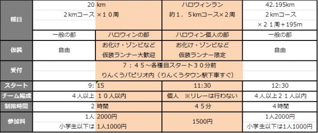 ※網掛けはハロウィンなどの仮装で楽しく走る種目。順位表彰は行わない