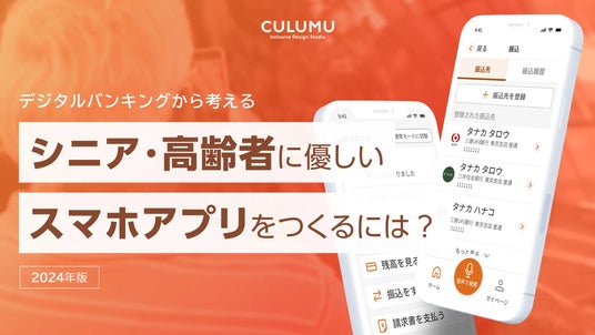 - デジタルバンキングから考えるシニア・高齢者に優しいスマホアプリをつくるには?(2024/03/29)https://culumu.com/downloads/senior-ui-design2(資料ページ)https://prtimes.jp/main/html/rd/p/000000099.000022873.html(PR TIMES)