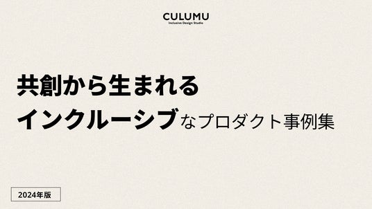- D&Iの取り組みから広がるインクルーシブデザイン事例集(全50ページ)https://culumu.com/downloads/inclusive-casestudy(資料ページ)https://prtimes.jp/main/html/rd/p/000000051.000022873.html(PR TIMES)