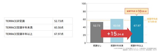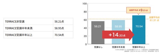 全国の高校3年生250名以上から収集したデータの分析に基づき、TERRACE受講生が、2025年度大学入学共通テストの国語と英語において、非受講生と比較して高い得点を獲得したことを発表いたします。