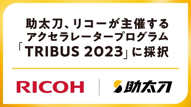建設業界に従事する全ての人たちを支えるマッチングプラットフォーム「助太刀」を運営する株式会社助太刀(所在地:東京都新宿区、 代表取締役社長 兼CEO:我妻陽一 以下 「当社」)は、株式会社リコー(所在地:東京都大田区 社長執行役員:大山晃 以下 「リコー」)が主催するアクセラレータープログラム「TRIBUS 2023」において統合ピッチコンテストに参加し、本年度のプログラムに参加するスタートアップ企業9社に選定されました。